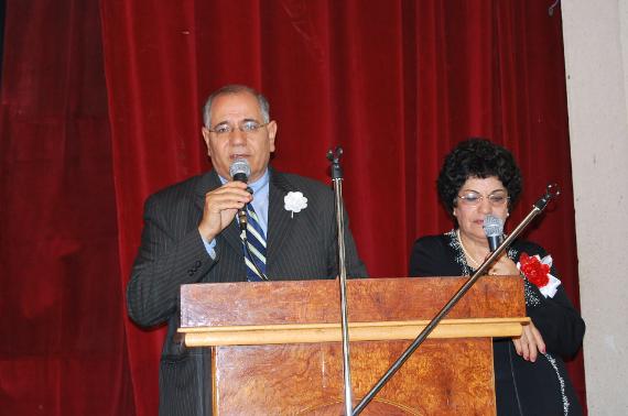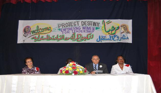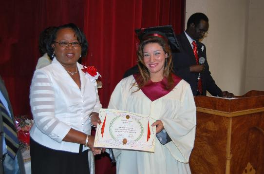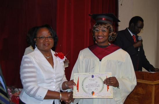 Barbara Davis presenting graduation certificate to Sudanese graduate